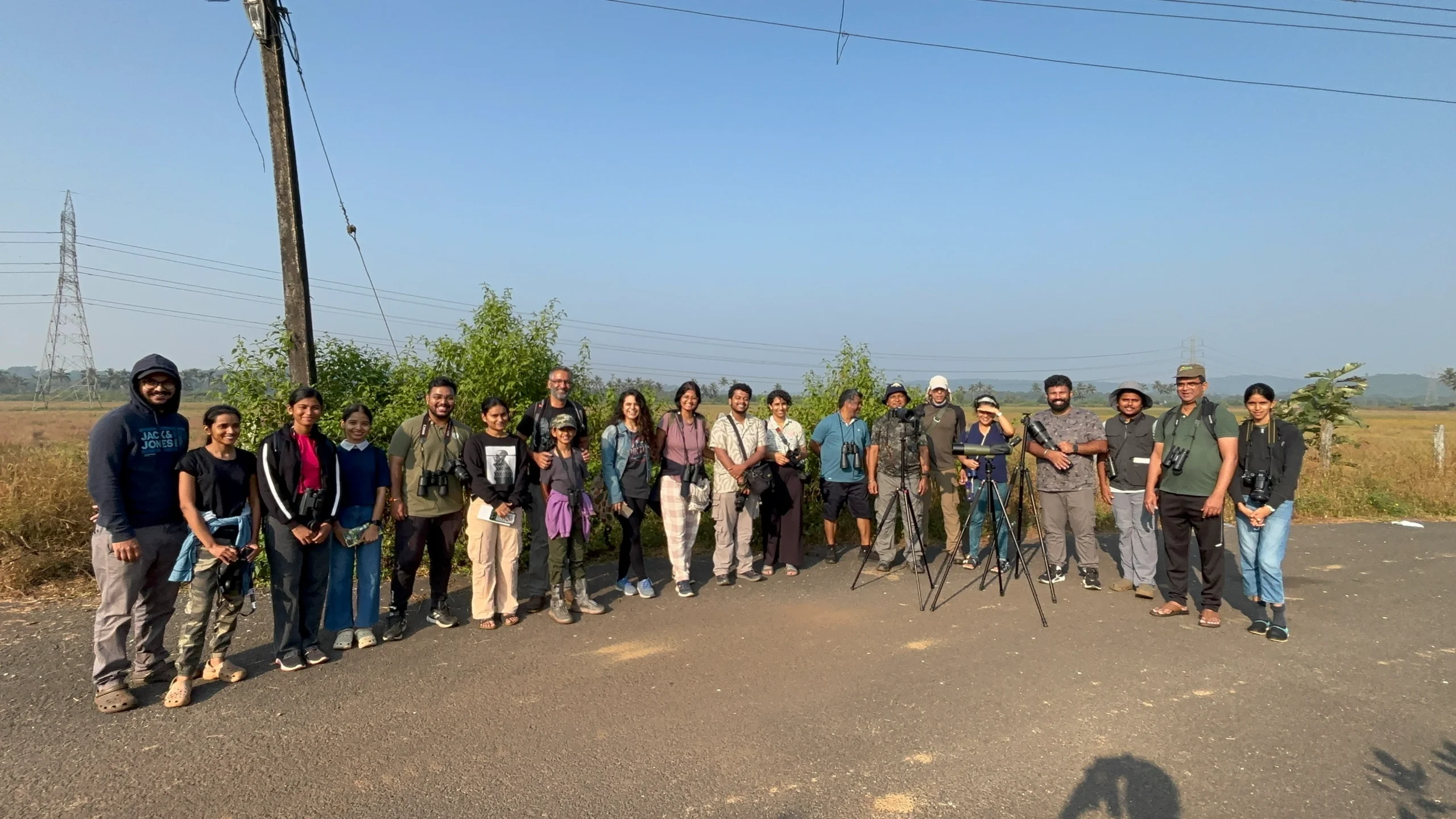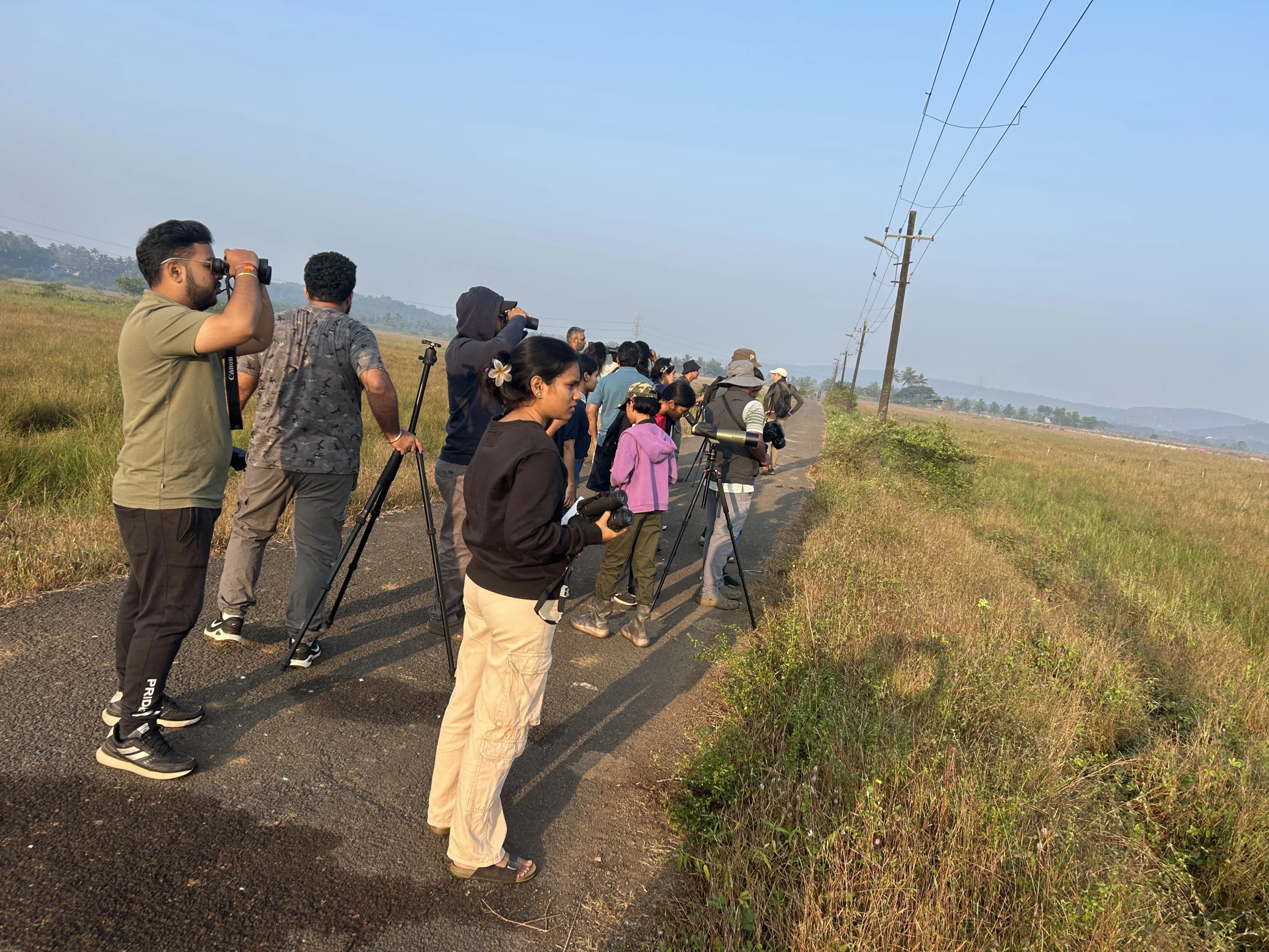 At Amona Fields, 20 participants embarked on an adventurous exploration through diverse habitats rich in birdlife. The group recorded an impressive 72 species, including highlights such as Lesser Adjutant, Yellow Bittern, Greater Spotted Eagle, Western Marsh Harrier, Malabar Grey Hornbill, Vernal Hanging Parrot, and an extraordinary sighting of 200 Baya Weavers. Binoculars and spotting scopes helped participants enjoy detailed views of these spectacular species.