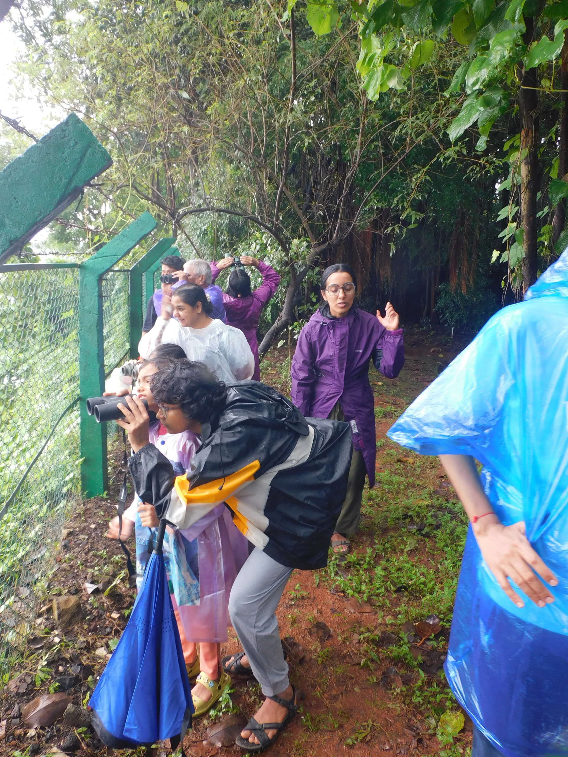 At Maharashtra Nature Park, 14 enthusiastic participants braved the heavy rains, arriving with raincoats, umbrellas, and binoculars in hand. The drizzle only added to the charm, and for many first-timers, the thrill of spotting birds through binoculars made the morning especially memorable. The energy of the group was lifted further by curious kids, whose questions and excitement brought a playful spirit to the walk.