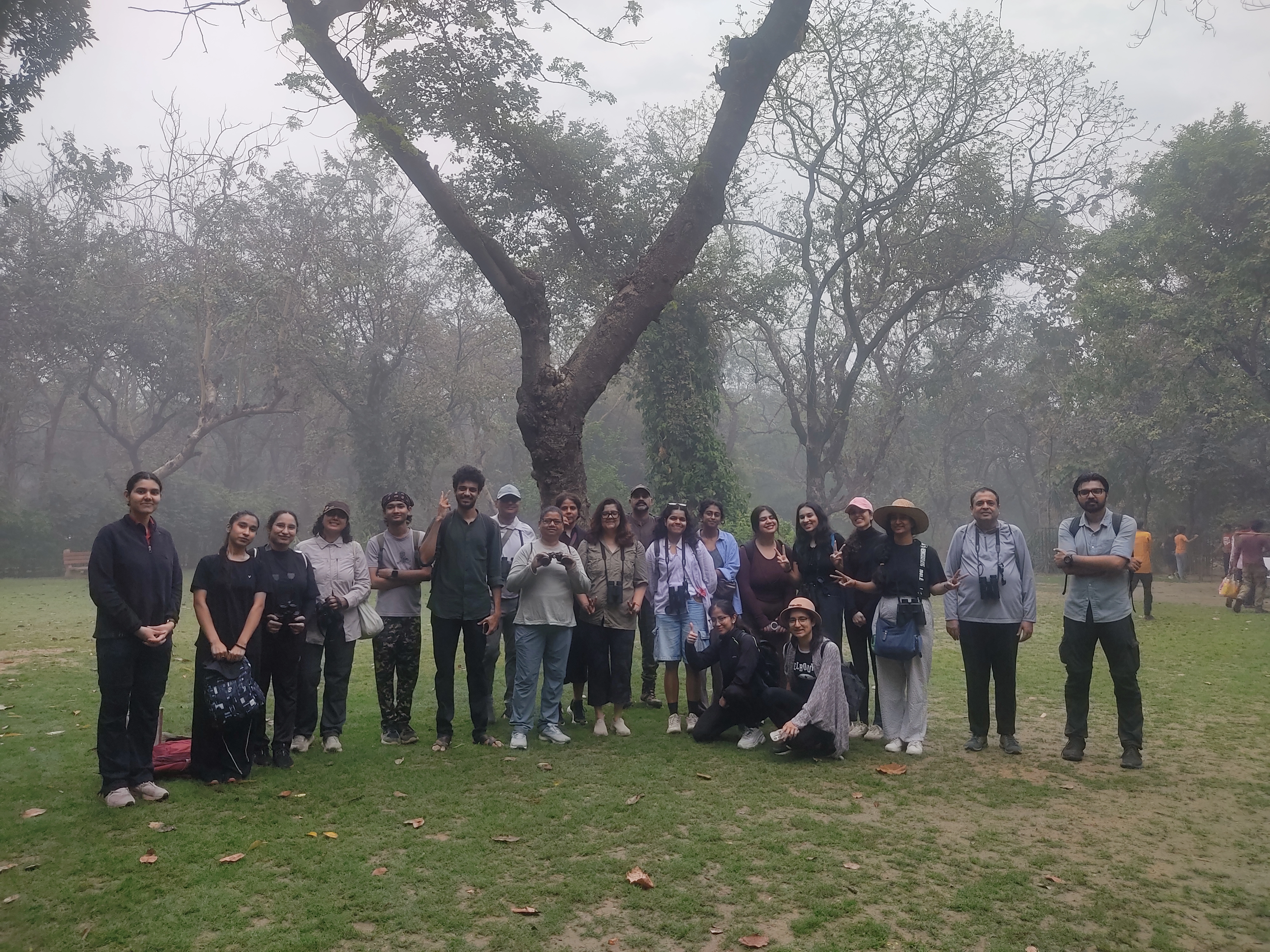 At Sanjay Van, Delhi, a large group of 24 participants joined Anjali Bhardwaj for an engaging bird walk that recorded 29 species despite challenging foggy conditions. The walk covered a mix of woody patches and water bodies, providing diverse habitats for birdlife.