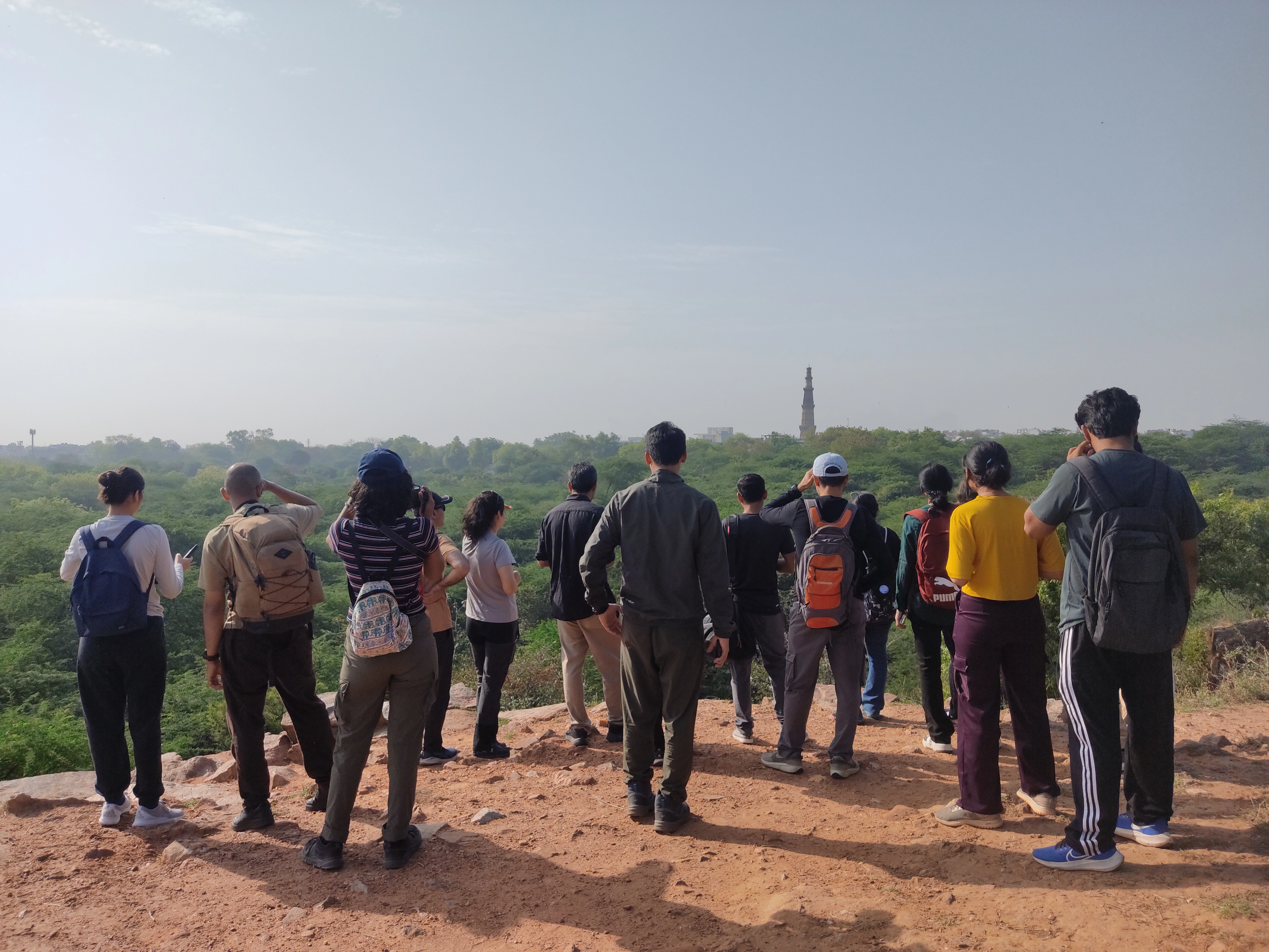 The bird walk at Sanjay Van was highly engaging, beginning with an interactive activity where participants named birds associated with colours—setting a lively tone for the session. Exploring key areas such as Lal Kot Wall and Anangtal, the group recorded 35 species, including Rosy Starlings, Lesser Whitethroats, Shikra, Greater Coucal, and Indian Spot-billed Duck. The mix of historical landscape and woodland habitat added depth to the experience.