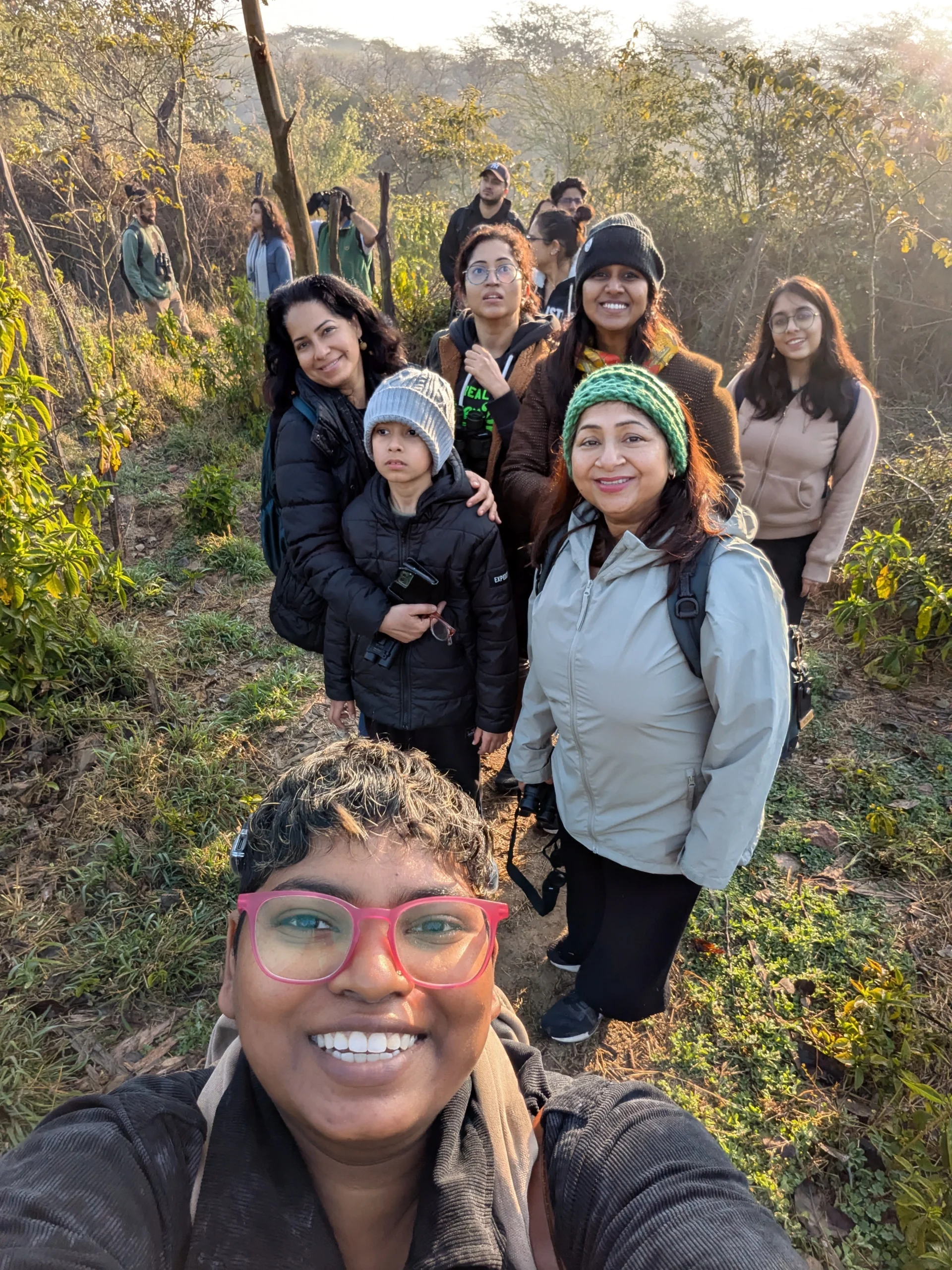 The bird walk at Sanjay Van, Delhi, led by Mansi Lodhi in collaboration with Midori Walks, brought together 20 participants for a refreshing exploration of one of the forest’s quieter, lesser-known trails. While Sanjay Van is widely known for its rocky hills and walking paths, this walk ventured into a more secluded pocket, offering a fresh perspective to many participants. The morning unfolded with sightings of familiar yet delightful species such as Oriental Magpie Robin, Red-whiskered Bulbul, Red-vented Bulbul, Eurasian Collared Dove, Brown-headed Barbet, Rufous Treepie, Jungle Babbler, and Jungle Myna, grounding the group in the rich everyday birdlife of the forest.